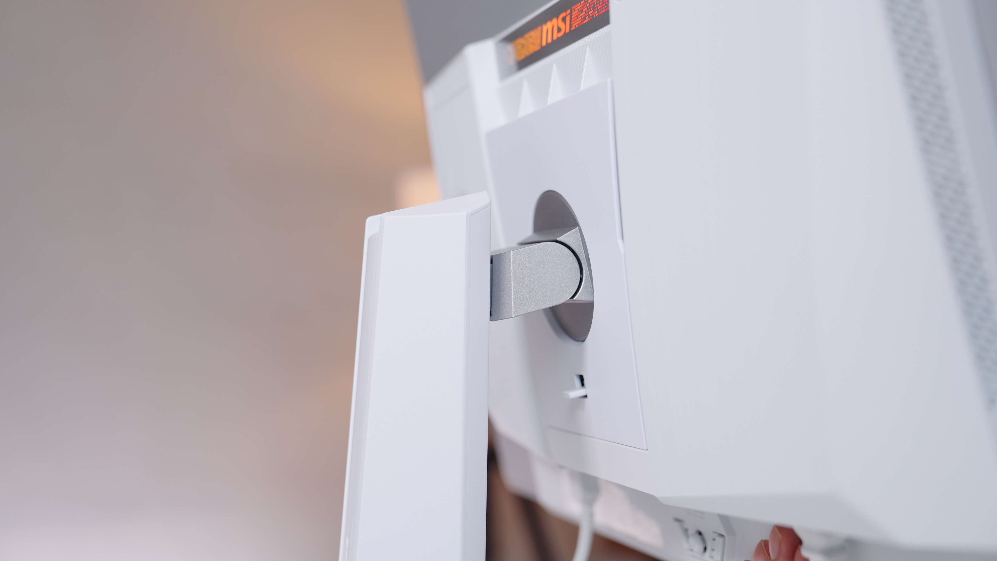 MPG 321URXW QD-OLED는 전면부가 심플한 화이트 톤으로 마감돼 깔끔한 인상을 준다. 후면에는 MSI의 아이덴티티가 반영된 비대칭 RGB 라이트가 탑재돼, 게임 시에는 몰입감을 높이고 일상에서는 은은한 무드등처럼 공간을 밝혀준다.