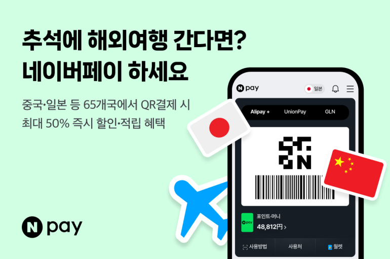 (씨넷코리아=김태훈 기자) 네이버페이(Npay)가 추석 연휴와 가을 여행 시즌을 맞아 해외여행객을 위한 다양한 해외QR결제 프로모션을 선보인다. 일본, 중국, 태국 등 인기 여행지를 중심으로 결제 할인·포인트 적립·세금환급 등 풍성한 혜택을 제공해 여행객들의 부담을 덜어줄 전망이다.