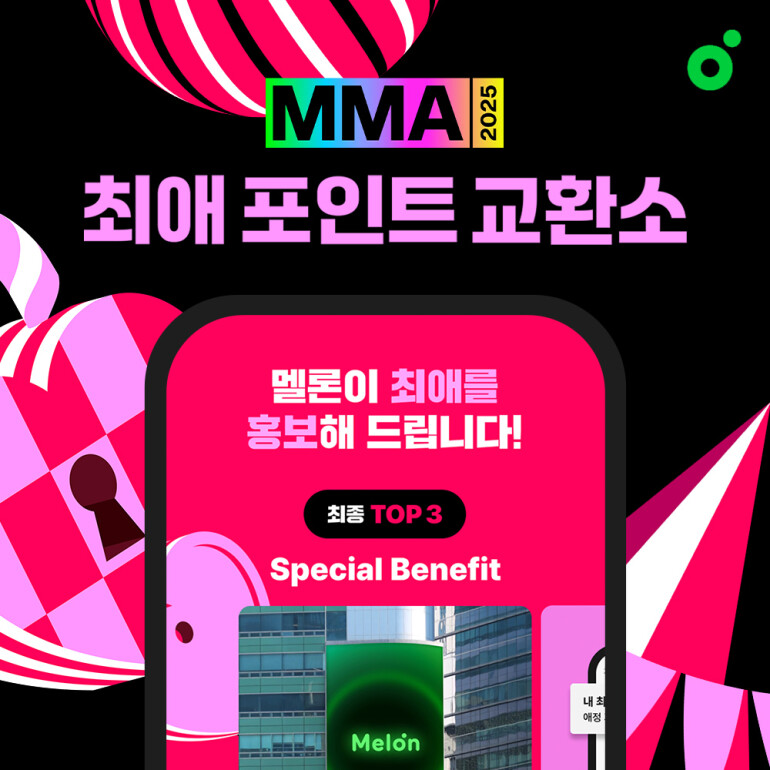 (씨넷코리아=신동민 기자) 카카오엔터테인먼트의 뮤직플랫폼 멜론(Melon)은 오는 12월 20일 서울 고척스카이돔에서 열리는 ‘The 17th Melon Music Awards(멜론뮤직어워드 2025, MMA2025)’의 사전행사로 내가 좋아하는 아티스트의 매력을 널리 뽐내는 ‘최애 포인트 교환소’ 이벤트를 이달 31일까지 진행한다고 16일 밝혔다.