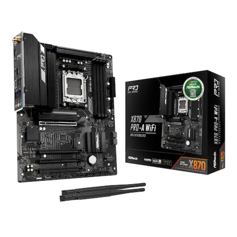 새롭게 선보이는 X870 Pro-A WiFi는 AMD의 차세대 플랫폼인 X870 칩셋을 기반으로 설계된 제품으로, AM5 규격을 통해 Ryzen 9000 시리즈 프로세서를 완벽히 지원한다. 16+2+1 파워 페이즈 구조와 80A Dr.MOS 전원부, 8-Layer PCB 설계를 통해 높은 전력 효율과 안정적인 오버클럭 성능을 제공하며, 고급형 게이밍 및 워크스테이션 구성에도 적합하다.