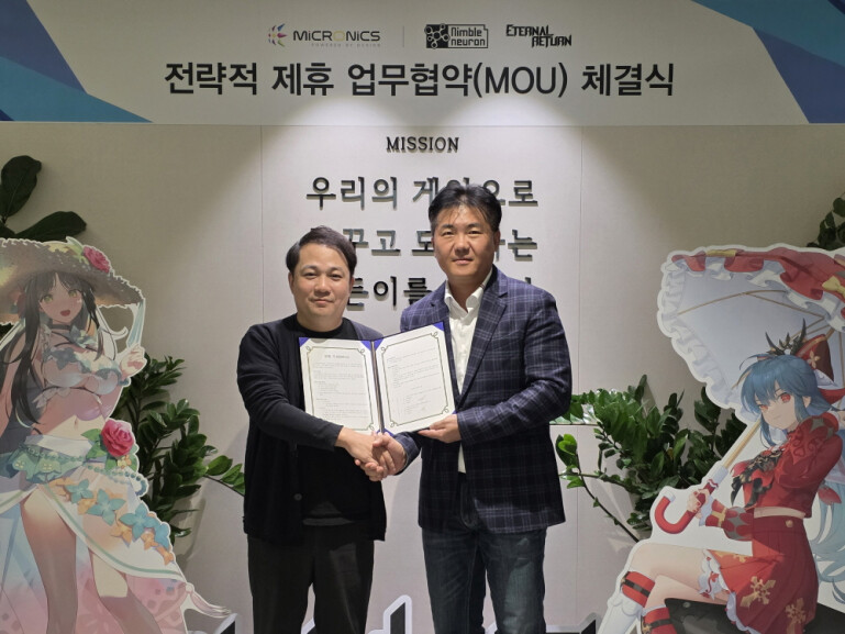 (씨넷코리아=신동민 기자) 한미마이크로닉스(이하 마이크로닉스)는 온라인 생존 배틀 아레나 게임 ‘이터널 리턴(Eternal Return)’을 개발·서비스 중인 ㈜님블뉴런(이하 님블뉴런)과 이터널 리턴 IP를 중심으로 한 전략적 협력 양해각서(MOU)를 체결했다고 28일 밝혔다.