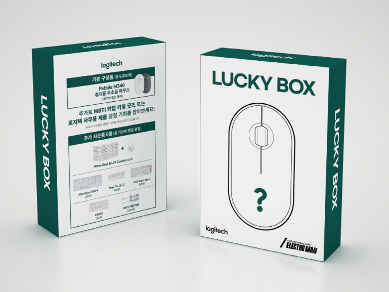 업무와 일상을 함께하는 소비자들을 위한 럭키박스는 감각적인 디자인과 실용성을 갖춘 휴대용 무소음 마우스 ‘Pebble M340’이다. 경품 확인이 가능한 스크래치 카드와 함께 제공되며, 19,900원의 할인된 가격으로 전국 일렉트로마트 74개점에서 총 5,000개 한정 수량으로 판매된다. 경품은 편안한 인체공학 키보드·마우스 콤보 ‘Wave Keys & Lift Combo’를 포함해 ‘Alto Keys K98M’, ‘Keys-To-Go 2’, ‘Pop Icon Keys’, ‘K380S’ 등 로지텍의 인기 키보드 라인업과 MBTI 키캡 키링으로 구성됐다.