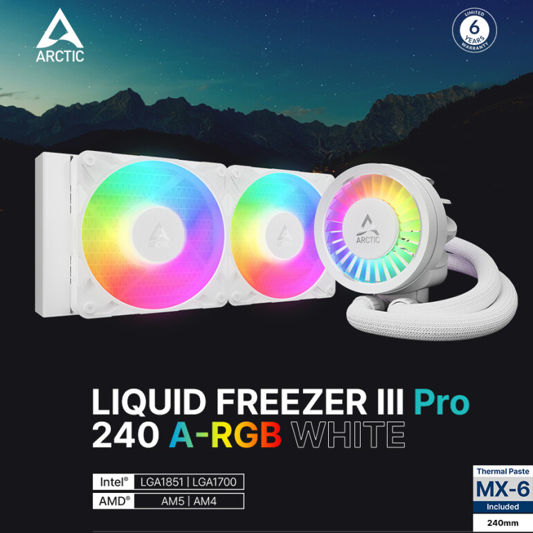 (씨넷코리아=신동민 기자) 서린씨앤아이가 ARCTIC의 일체형 수랭 쿨러 Liquid Freezer III PRO 240 A-RGB 화이트를 국내에 정식 출시했다고 4일 밝혔다. 지난 7월 선보인 블랙 에디션과 동일한 하드웨어 사양을 유지한 채 컬러만 화이트를 추가해, 통일감 있는 쇼케이스형 시스템을 원하는 사용자 선택지를 넓혔다.