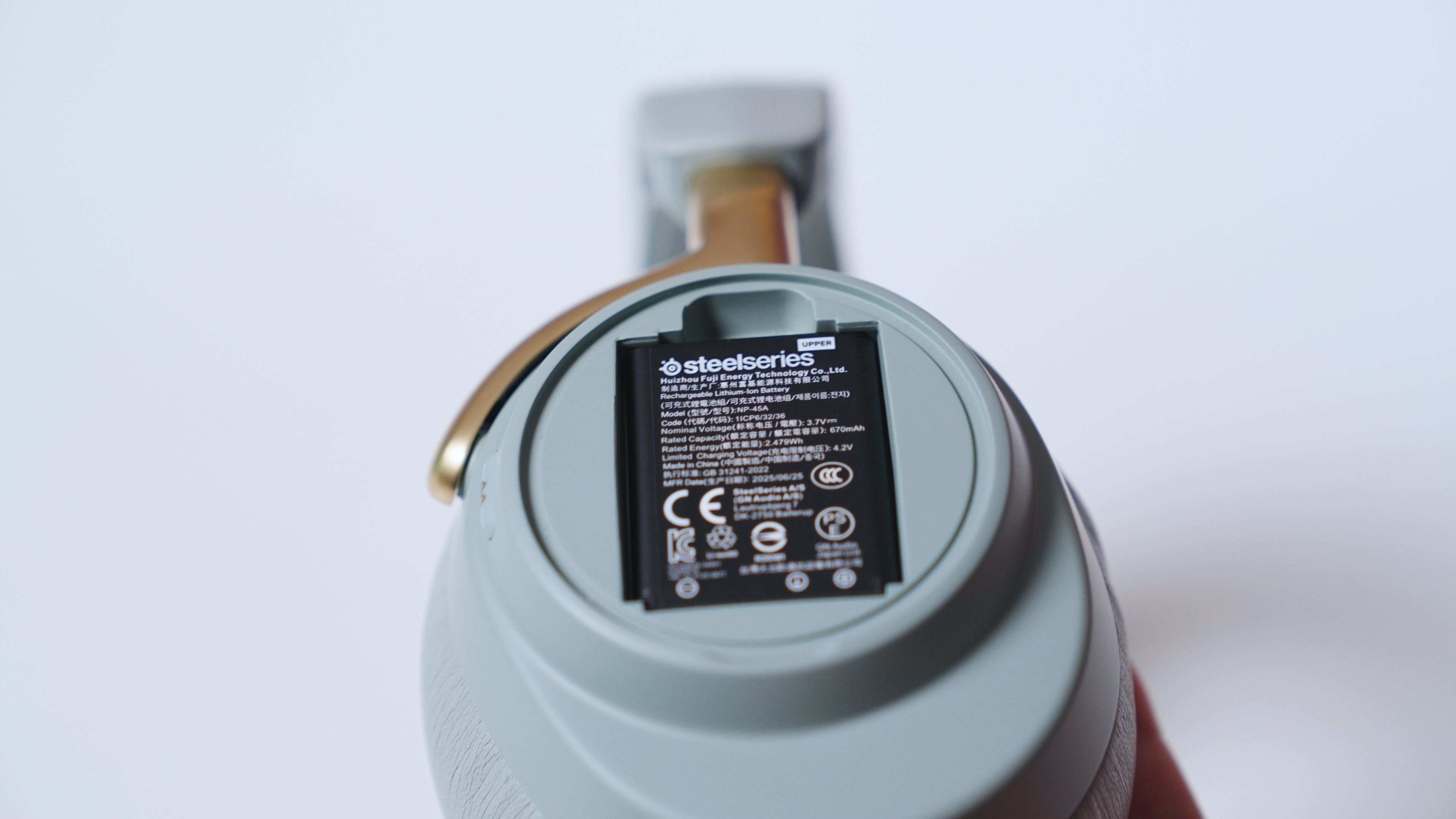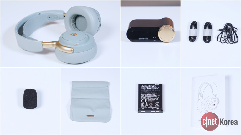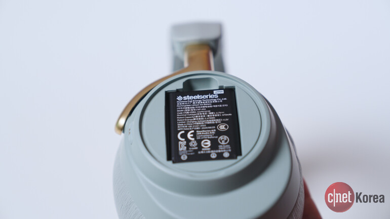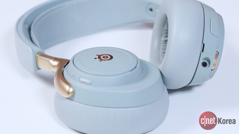 특히 눈길을 끈 부분은 세이지 골드 컬러의 독특함이다. 일반적인 게이밍 기어에선 쉽게 볼 수 없는 매력적인 컬러다. 또 프레임이나 볼륨 조절 다이얼, 좌우 이어컵에 있는 스틸시리즈 로고 등에 반짝이는 골드 컬러 포인트로 멋을 부렸다. 왼쪽 이어컵에는 액티브 노이즈 캔슬링 활성화 버튼과 마이크 음소거 및 볼륨 컨트롤 휠, 3.5mm 오디오 잭과 붐 암 마이크가 자리했다. 스틸시리즈 로고가 새겨진 캡은 자석 방식인데 이를 열면 충전을 위한 USB-C 포트가 있다. 오른쪽 이어컵에는 블루투스 연결 버튼, 그리고 동일한 자석 캡을 열면 교체가 가능한 배터리가 들어있다.