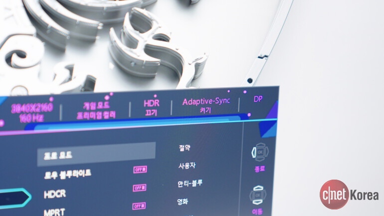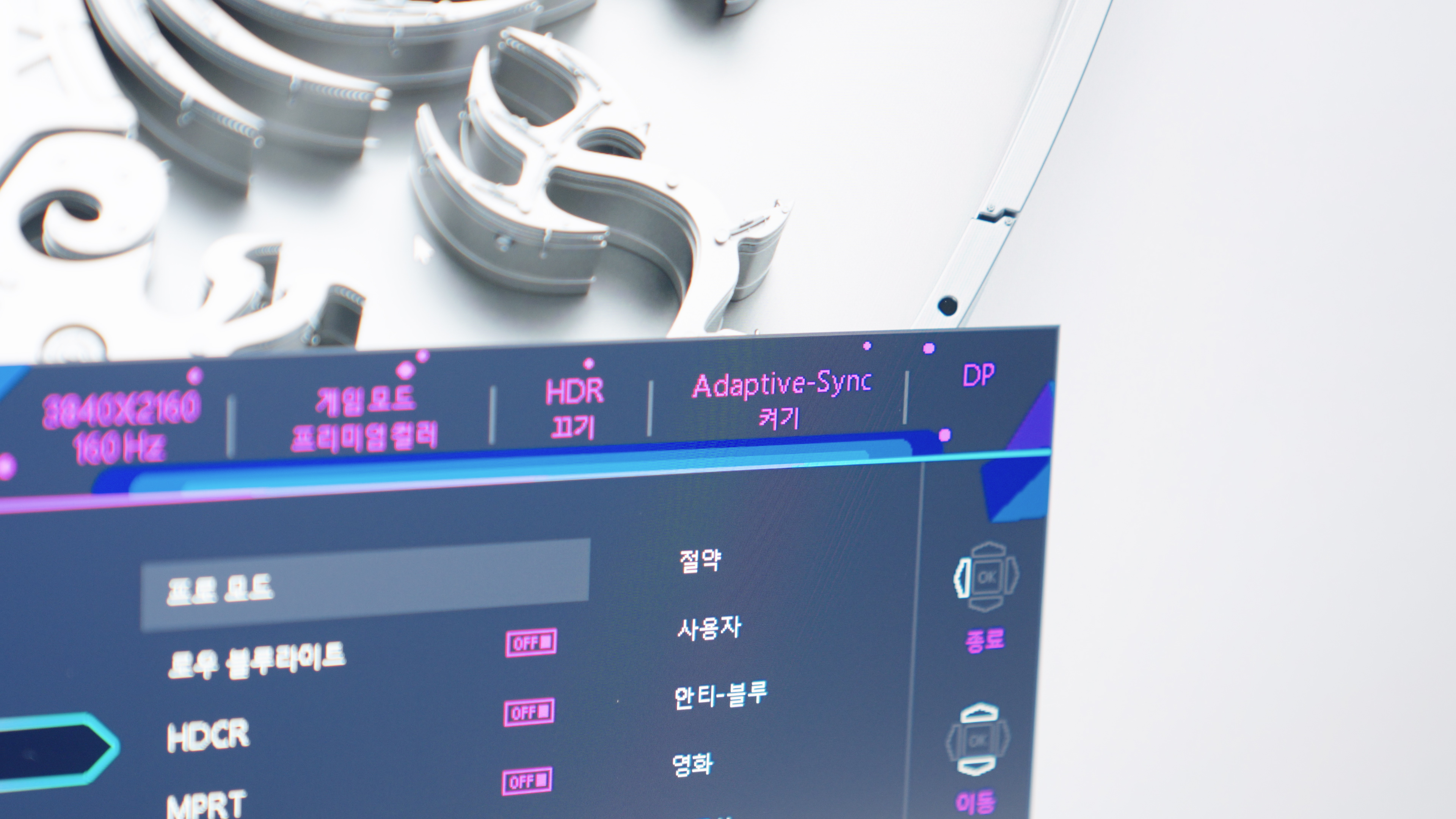 디스플레이 성능 면에서 이 제품의 가장 큰 특징은 듀얼 모드 지원이다.최대 4K 해상도에서는 160Hz로, FHD에서는 320Hz로 자유롭게 주사율을 바꿀 수 있다.