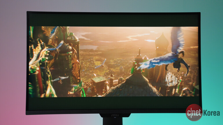 이 모니터는 워낙 장점이 많아 할 이야기가 많다. 그중에서도 눈에 가장 먼저 들어온 포인트는 바로 미니 LED 디스플레이다. 밝은 부분은 더 밝게, 어두운 곳은 확실히 어둡게 표현하는 HDR 효과가 매우 도드라진다. 최대 밝기가 높은데다가 빛샘 현상이 적은 점도 강점이다. 특히 OLED와 달리 번인(Burn-in) 걱정을 덜어 안정적인 사용이 가능하다.