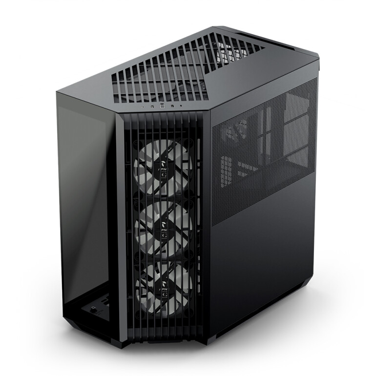 전면 각도 패널은 120mm 팬 최대 3개, 140mm 팬 2개, 그리고 160mm 팬 2개까지 폭넓게 장착할 수 있으며, 상단에는 120mm 3개 또는 140mm 2개 구성, 하단 역시 120mm 3개 또는 140mm 2개까지 설치가 가능해 총 10개의 팬 구성을 지원한다. 또한 전면·상단·하단에 360mm 규격의 수랭 쿨러를 장착할 수 있어 다양한 하드웨어 구성에 최적화된 냉각 환경을 구축할 수 있다.