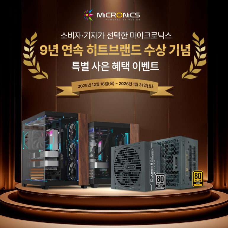 이번 수상을 기념해 마이크로닉스는 2025년 12월 18일부터 2026년 1월 31일까지 파워서플라이와 PC 케이스를 중심으로 한 감사 이벤트를 진행한다. 이벤트 대상은 마이크로닉스 전 제품군 중 권장 소비자가 3만 원 이상인 제품으로, 행사 기간 동안 제품을 구매한 소비자는 다양한 혜택에 참여할 수 있다.