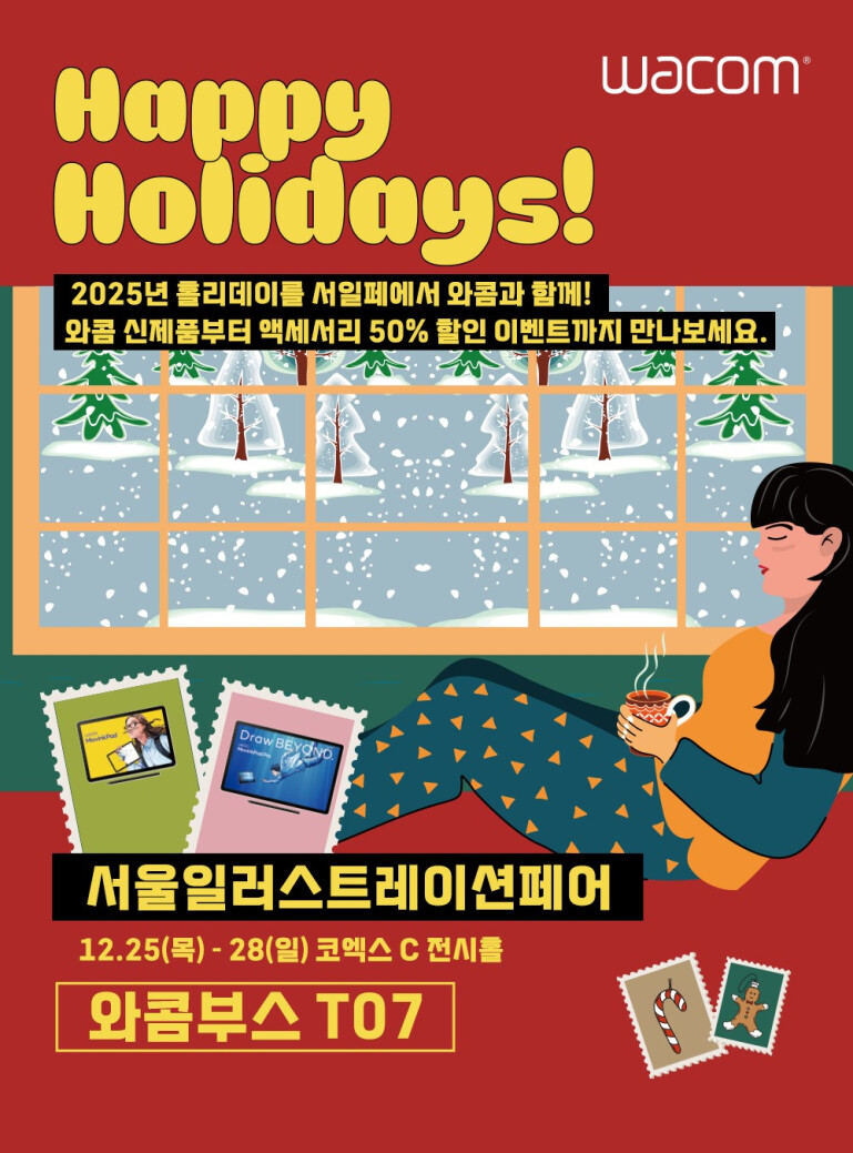 이와 함께 부스 방문객은 연말 시즌을 맞아 진행 중인 ‘와콤 홀리데이 프로모션’ 혜택도 함께 받아볼 수 있다. 무빙크패드를 비롯해 신티크 프로 시리즈, 인튜어스 등 와콤의 펜 및 액정 타블렛과 드로잉 패드 제품 본체를 구매한 고객을 대상으로 전용 액세서리를 최대 50% 할인된 가격으로 제공한다. 프로 펜, 거치대, 펜심 등 주요 액세서리가 포함돼 창작 환경을 한층 업그레이드할 수 있다.