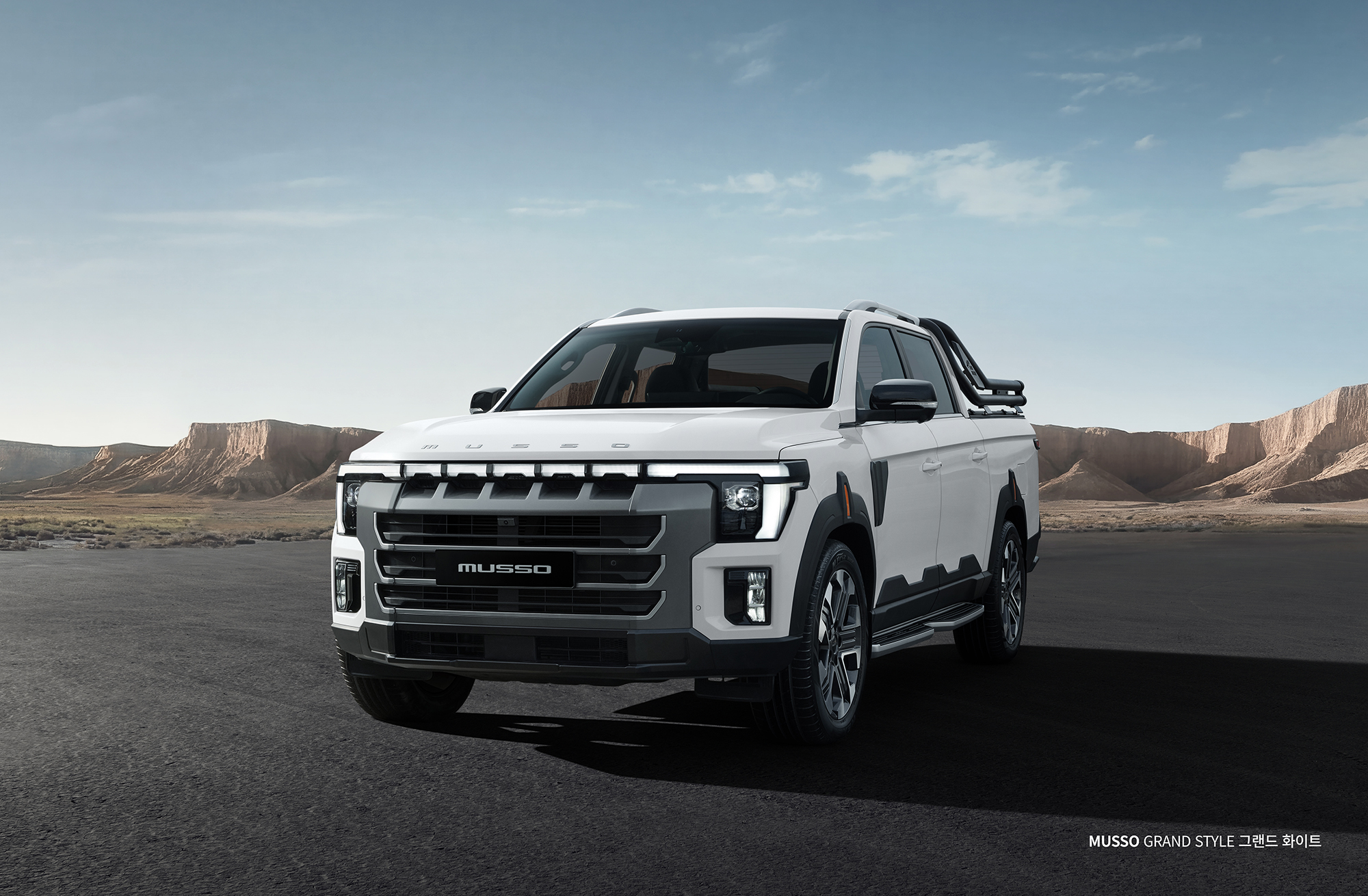 (씨넷코리아=신동민 기자) KG 모빌리티가 프로젝트명 ‘Q300’으로 개발해 온 차세대 픽업의 공식 차명을 ‘무쏘(MUSSO)’로 확정하고, 외관 이미지를 26일 공개했다.새롭게 선보이는 ‘무쏘’는 픽업 브랜드 경쟁력 강화를 위해 지난 1월 론칭한 ‘무쏘’ 픽업 통합 브랜드를 대표하는 플래그십 모델로, 차명과 브랜드명을 동일하게 적용해 브랜드 정체성을 분명하게 드러낸다. ‘무쏘’는 KGM의 디자인 철학 ‘Powered by Toughness’를 바탕으로 정통 오프로드 스타일의 역동적이고 단단한 외관 디자인을 구현해 오리지널 픽업 아이덴티티를 한층 강화했다. 강인한 스퀘어 타입 프론트 범퍼와 라디에이터 그릴을 비롯해 역동적인 측면 캐릭터 라인과 볼륨감이 픽업 본연의 역동성을 더욱 강조한다.KGM은 ‘무쏘’의 디자인 개발 과정을 담은 스케치 영상도 함께 공개하며 기대감을 한층 끌어올렸다. 해당 영상은 KGM 공식 채널(홈페이지, 유튜브, 인스타그램 등)을 통해 26일 17시부터 확인할 수 있다.