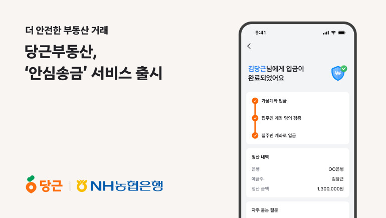(씨넷코리아=윤현종 기자) 당근 부동산 서비스 ‘당근부동산’이 ‘안심송금’ 서비스를 도입하며 더욱 안전한 거래 환경 조성에 나섰다.