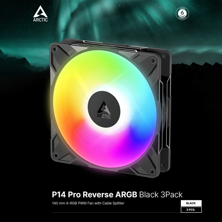 (씨넷코리아=박준범 기자) 컴퓨터 관련 주요 부품 수입 유통 전문 업체 서린씨앤아이가 ARCTIC(아틱)의 시스템 쿨링 팬 신제품 P14 Pro Reverse A-RGB 3팩 7종을 국내 출시했다. 신제품은 140mm 규격의 리버스(Reverse) 타입 A-RGB PWM 팬을 3개로 구성한 패키지로, 블랙과 화이트 색상 선택지를 제공한다.ARCTIC P14 Pro Reverse A-RGB는 공기 흐름 방향을 고려한 리버스 설계를 적용해, 케이스 흡기 구성에서도 튜닝 요소를 전면에 배치하려는 시스템 빌드를 겨냥한다. 팬 규격은 140 x 140 x 30mm로 일반 140mm 대비 두께를 확보한 구조를 채택했으며, 냉각 효율을 중시하는 하이엔드 빌드 환경에 맞춘 설계를 특징으로 한다.성능 측면에서 P14 Pro Reverse A-RGB는 400RPM부터 최대 2,650RPM까지 PWM 제어를 지원한다. 또한 PWM 신호가 5% 이하일 때 회전을 정지하는 0dB 모드를 지원해, 저부하 환경에서의 정숙 운용을 고려했다. 풍량은 최대 98CFM(166.5m³/h), 고정압은 최대 5.1mmH2O를 제공한다.팬 블레이드와 프레임 설계는 효율과 안정성을 함께 고려했다. 블레이드와 프레임 간 간격을 1mm로 좁힌 구조를 적용했으며, FDB(Fluid Dynamic Bearing) 베어링과 자동 밸런싱 설계를 통해 진동과 소음을 억제하는 방향으로 구성했다.조명은 A-RGB Gen2 기반 12개의 LED를 탑재해 튜닝 시스템 연출을 지원한다. 조명은 5V 3핀 A-RGB 인터페이스를 사용하며, 팬 전원은 12V 4핀 PWM을 적용했다. 3팩 패키지는 데이지체인 배선을 고려한 케이블 구성(기본 400mm, 추가 80mm 체인)을 포함해, 다수 팬 구성 시 배선 정리 편의성을 강화했다.