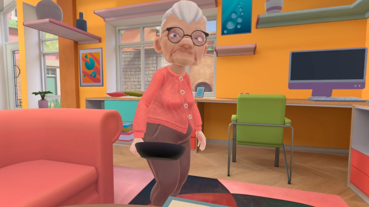 게임 목적은 단순하다. 난장판을 만드는 것. 물건을 잡아 던지고 상호작용을 하다보면 엄청나게 큰 그림자가 내 몸을 감싸는 걸 느낄 수 있다. 바로 이 게임 내 유일한 적, 할머니다.