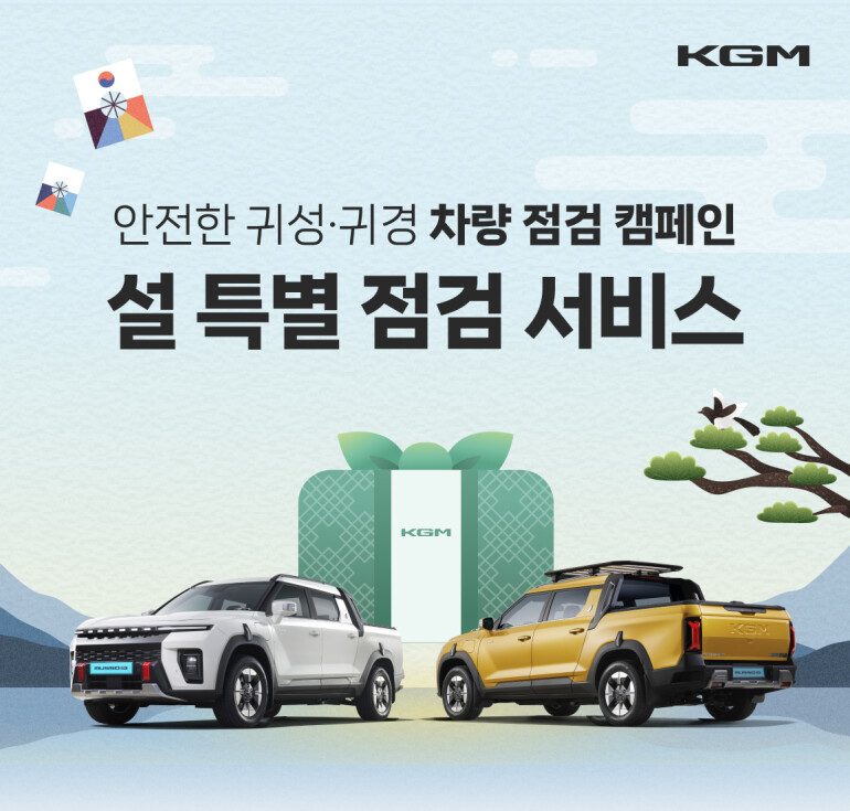 (씨넷코리아=박준범 기자) KG 모빌리티(이하 KGM)가 설 연휴를 맞아 고향을 찾는 고객들의 안전한 귀성길을 돕기 위해 ‘2026년 설 맞이 차량점검 서비스’를 시행한다고 10일 밝혔다.