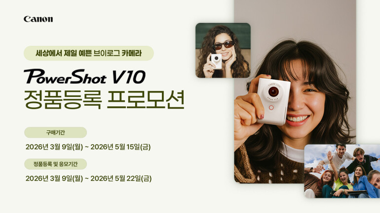 (씨넷코리아=윤현종 기자) 토탈 이미징 솔루션 기업 캐논코리아가 봄 시즌을 맞아 RF 렌즈 및 파워샷(PowerShot) V10구매 고객 대상 2026년 상반기 정품등록 프로모션을 실시한다.