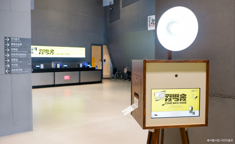 한국후지필름은 미술관 1층에 누구나 이용할 수 있는 ‘컴백홈 포토부스’를 운영한다. 관람객은 별도의 비용 없이 촬영에 참여할 수 있으며 가족이나 친구와 함께 일상의 순간을 기록하고 나누는 경험을 할 수 있다.