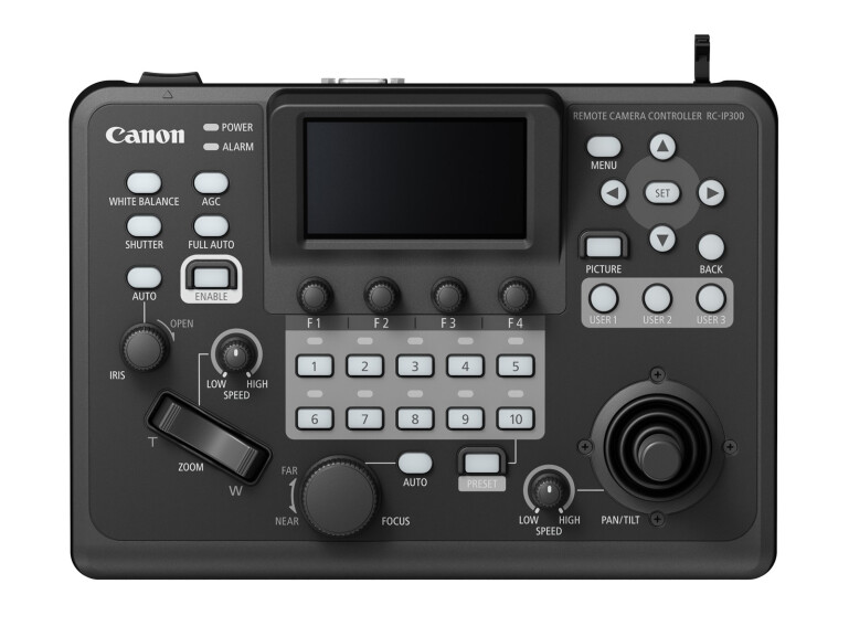 리모트 카메라 컨트롤러 ‘RC-IP300’도 함께 공개됐다. 기존 모델 대비 크기를 줄여 제한된 공간에서도 운용이 가능하며 3.5형 터치 디스플레이를 통해 최대 9대 카메라 영상을 동시에 확인할 수 있다.