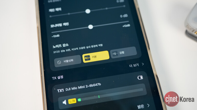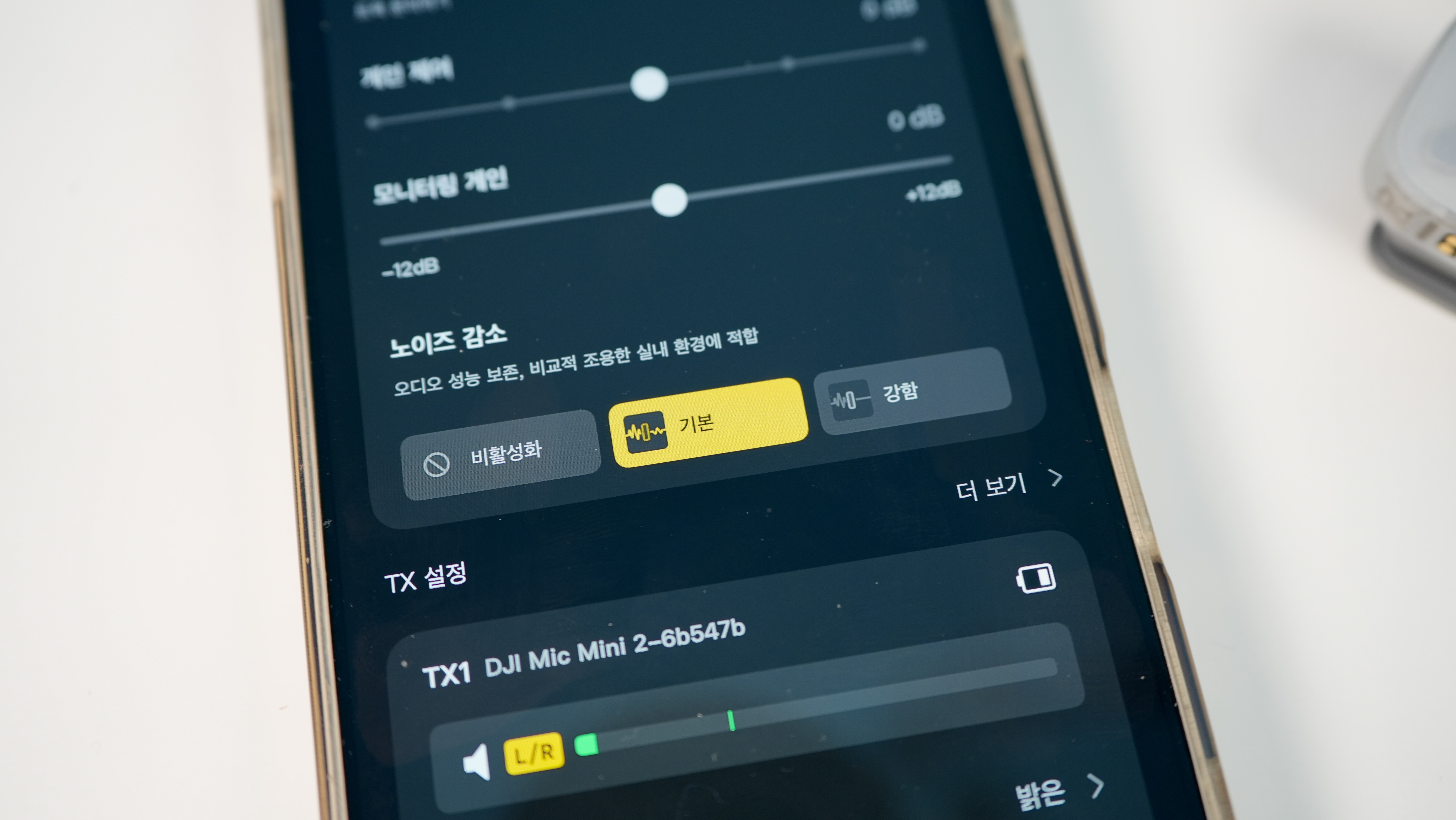 2단계 소음 감소(Noise Reduction) 기능도 유용하다. 카페나 지하철처럼 소음이 일정한 환경에서 효과가 뚜렷했고 자동 리미터는 박수 소리나 갑작스러운 고함 장면에서도 클리핑 없이 파형을 잡아줬다.