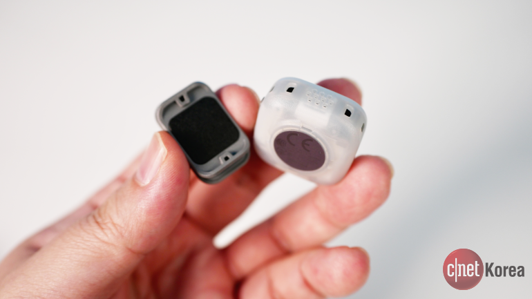 손에 쥐어보면 Mic Mini 2 송신기는 예상보다 훨씬 작다. 납작하고 모서리가 둥글게 처리된 형태로 기본 제공되는 오프화이트 블랙과 클라우드 화이트 커버 외에 별매 8가지 컬러를 추가할 수 있어 총 10가지 선택지가 생긴다.